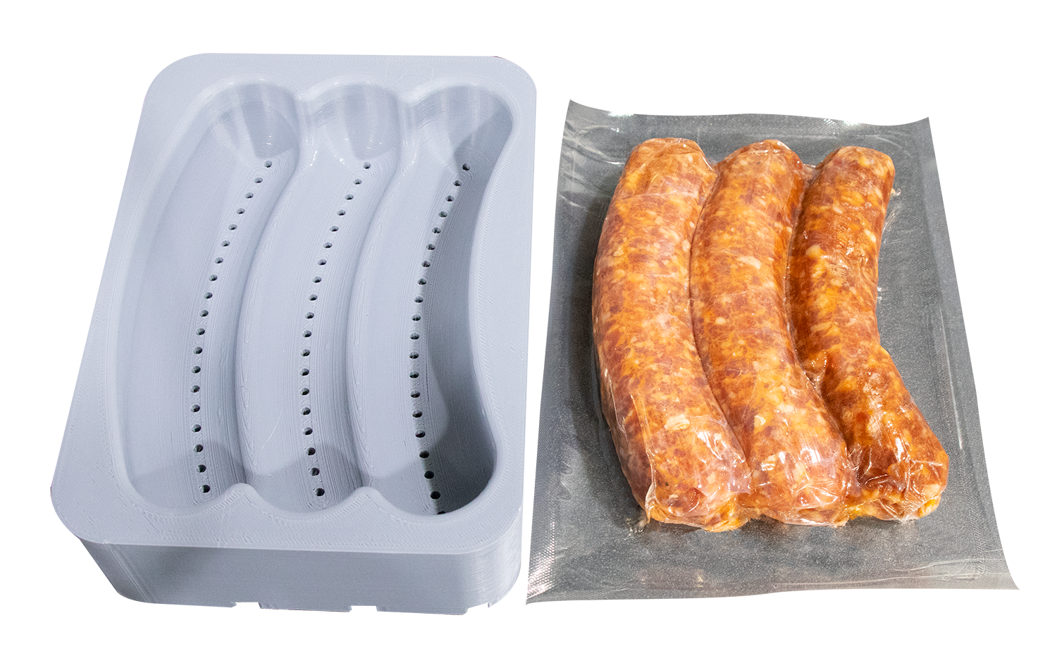 Custom Tooling ensures the fillets remain in the ideal shape instead of being pulled into the void during the vacuum packaging process and changing the product shape.