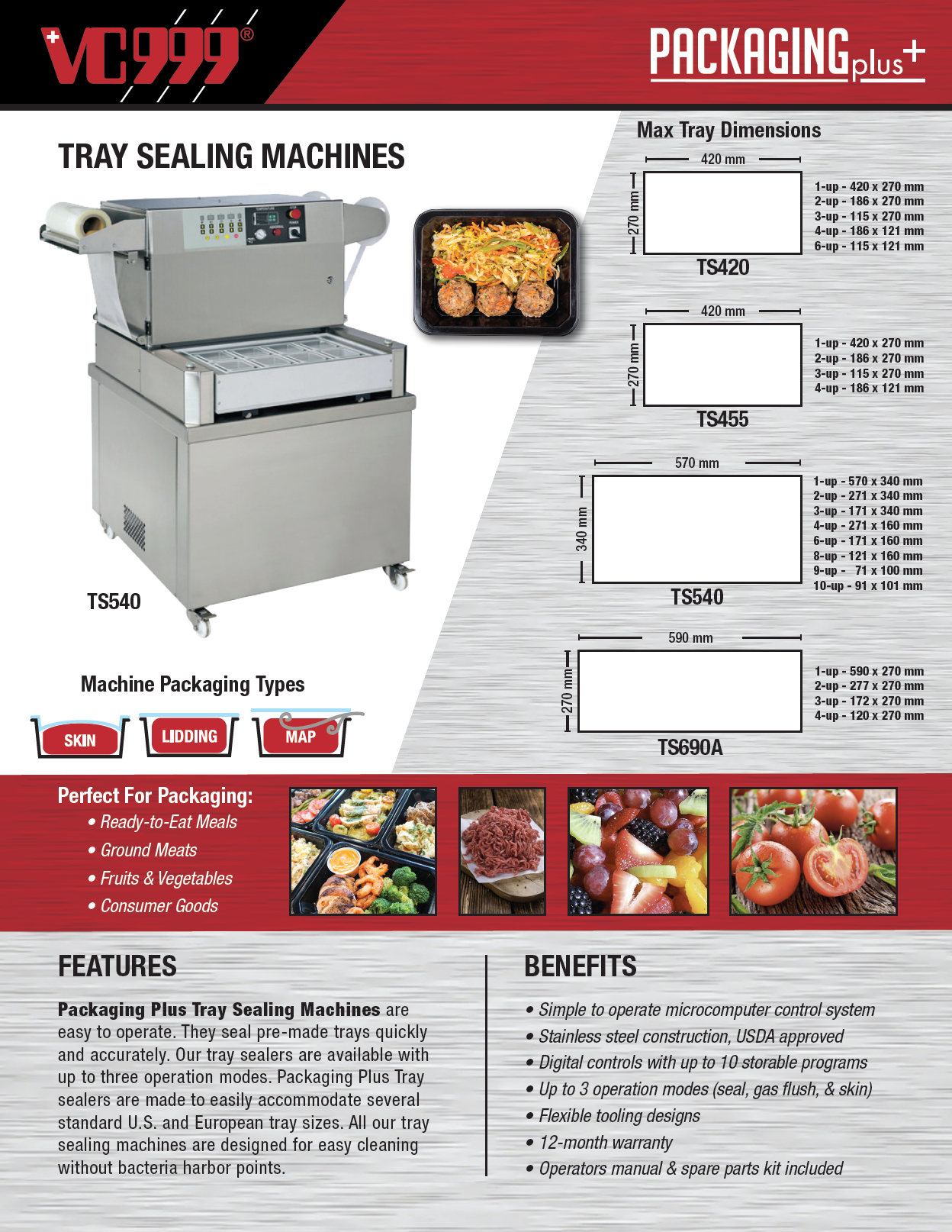The TS420 Tray Sealer is a compact and versatile automatic drawer tray sealing machine Ideal for small to medium production runs Typically selected by independent processors, hotel restaurants, institutions, grocery stores, R& D Laboratories. Tray Sealers seal trays quickly and accurately, making packaging flexible and affordable.