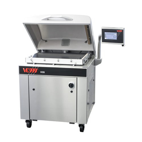 The K5S Vacuum Packaging Machine is designed to be ergonomically attractive and extremely user-friendly. The chamber is located in the lid, which allows for an easily cleaned flat stainless steel chamber base. High sealing pressure and control ensure good sealing even with coarse fold formation.